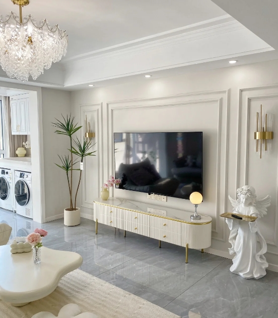 然后,法式奶油風還特別注重細節(jié)和質(zhì)感。比如,墻面通常會選擇帶有紋理的乳膠漆,看起來既有質(zhì)感又不失溫柔。家具方面,也是以簡約、復(fù)古為主,配上一些金屬或木質(zhì)的裝飾元素,整個空間就顯得既高級又不失溫馨。